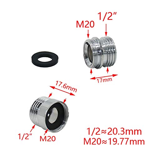 Nuojie Connettore del Tubo Flessibile Argento 1/2 for M20 filettato in Ottone connettore Garden Rubinetto Adattatore M20 Maschio/Femmina Threaded Fittings Rubinetto connettore 1 (Color: M20 Female)