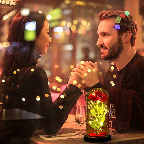 Nuomaidi "La Bella e La Bestia Rose Incantate,Elegante Cupola di Vetro con Base Pino Luci LED,Beauty and Beast Regali Magici Decorazioni per San-Valentino Anniversario di Matrimonio Vacanza