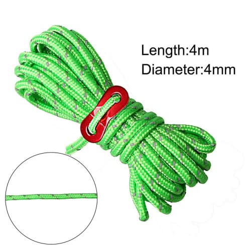 Nuosen 4 mm Reflective Cord Guy Line, 6 pezzi antivento tenda guida corda con regolatore di alluminio da campeggio (lunghezza 40,6 cm)