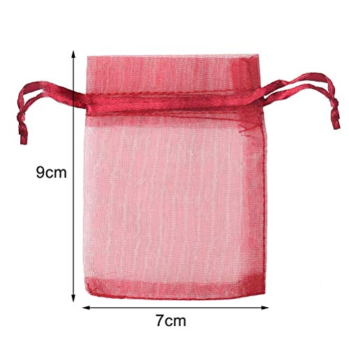 Nuoshen 100 sacchetti in organza di colore misto, piccoli sacchetti in organza, sacchetti per bomboniere, sacchetti per gioielli con coulisse, 3.5x2.7in, organza
