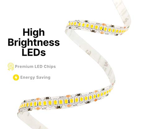 NUOVA GERMANY - PRO Strip LED Alta Luminosita 5M, Striscia Nastro 120W,24V 24W/M 2569Lm/m Flessibile Tagliabile 240Led/m SMD 2835, Luce Calda 3000K