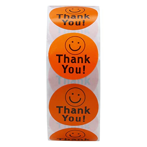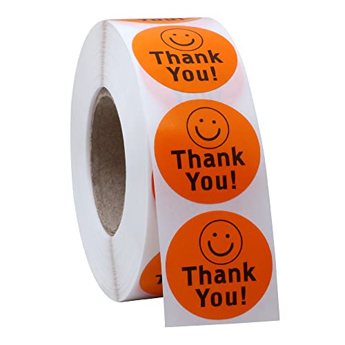 Nuova vendita calda rotonda Thank You Smiley Happy 1.000 etichette adesive adesivi per rotolo arancione