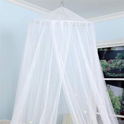 Nuovo baldacchino a cupola rotonda aggiornato con stelle incandescenti fai-da-te, Denser per zanzariere bianco e migliore qualità per bambini, ragazzi, ragazze