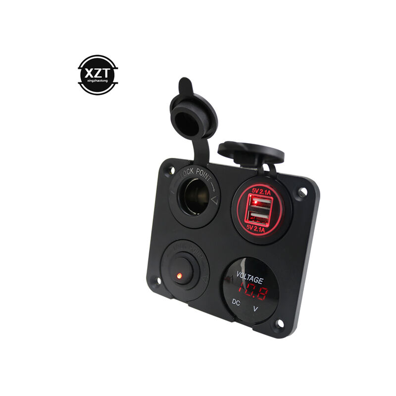 Nuovo caricatore per auto con doppia porta USB + voltmetro a LED + presa di alimentazione 12-24V + interruttore On-Off 4 in 1 pannello interruttori a LED per barche Marine per auto Caratteristiche: Può rilevare l'utilizzo della batteria in qualsiasi momento e ridurre il rischio di sicurezza. Applicabile all'installazione e all'uso di strumenti di trasporto su larga scala di fascia alta come navi, yacht, Camper e autobus. La tensione di ingresso del prodotto è 12-24V e tutti i camion di 12-24V possono essere installati e utilizzati e lo scope di L'uso è molto ampio. È realizzato in resistente alle alte temperature, resistente alle basse temperature, ignifugo ed ecologico Materiale ecologico. E può essere utilizzato in un ambiente con una temperatura minima di-25 °C e una temperatura massima di 80 °C. Descrizione: È dotato di doppie porte USB, che possono essere utilizzate per l'alimentazione di dispositivi esterni dell'auto. E può anche fornire alimentazione per telefoni cellulari