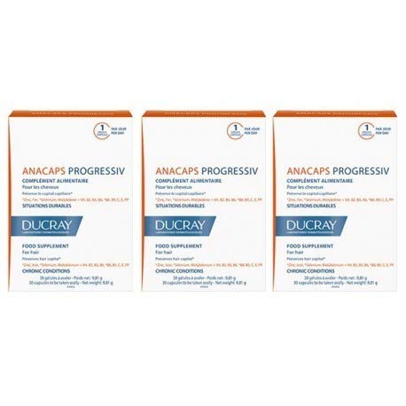 3X Nuovo Ducray Anacaps Progressiv - Contro la Caduta Cronica dei Capelli da 90 Cps - 3 Mesi di Trattamento