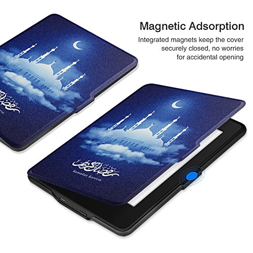 Nuovo E-Reader Kindle 8th Schermo Touch da 6" (Non Adatto Kindle Oasis) Custodia Finta Pelle Intelligente Sonno/veglia Case Cover per Amazon Kindle Senza Luce 2016 Versione, Mezzaluna Castello