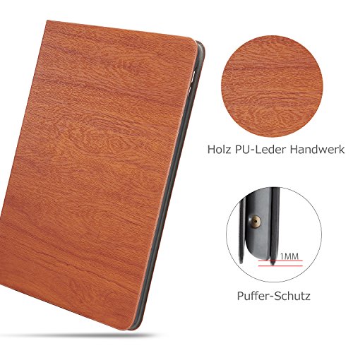 Nuovo iPad 2017 Custodia, iPad Pro 9.7 Custodia, iPad Air 2 Custodia, auaua iPad 9.7 PU Pelle Tasche schutzhhuelle con auto sonno/sveglia la funzione + Clear Proteggi schermo (regalo) per Apple Tablet marrone Braun-Holz iPad Air 2