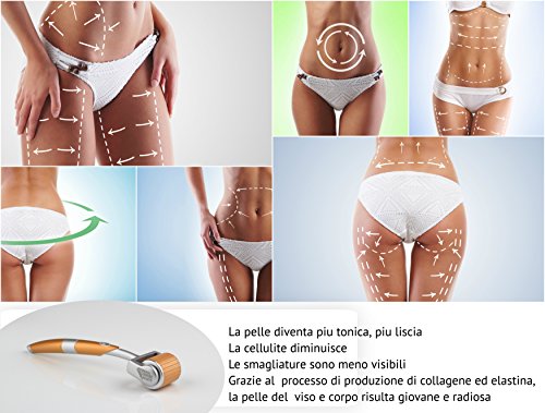 NUOVO LUXURY DERMA ROLLER 192 micro aghi in TITANIO 1.5mm per il trattamento delle rughe e linee sottili, pori dilatati, macchie e cicatrici post acne, cellulite e smagliature,caduta dei capelli - favorisce la produzione di elastina e collagene nella pelle del VISO, LABBRA, CONTORNO occhi, collo e corpo - EFFETTO LASER (1.5mm)