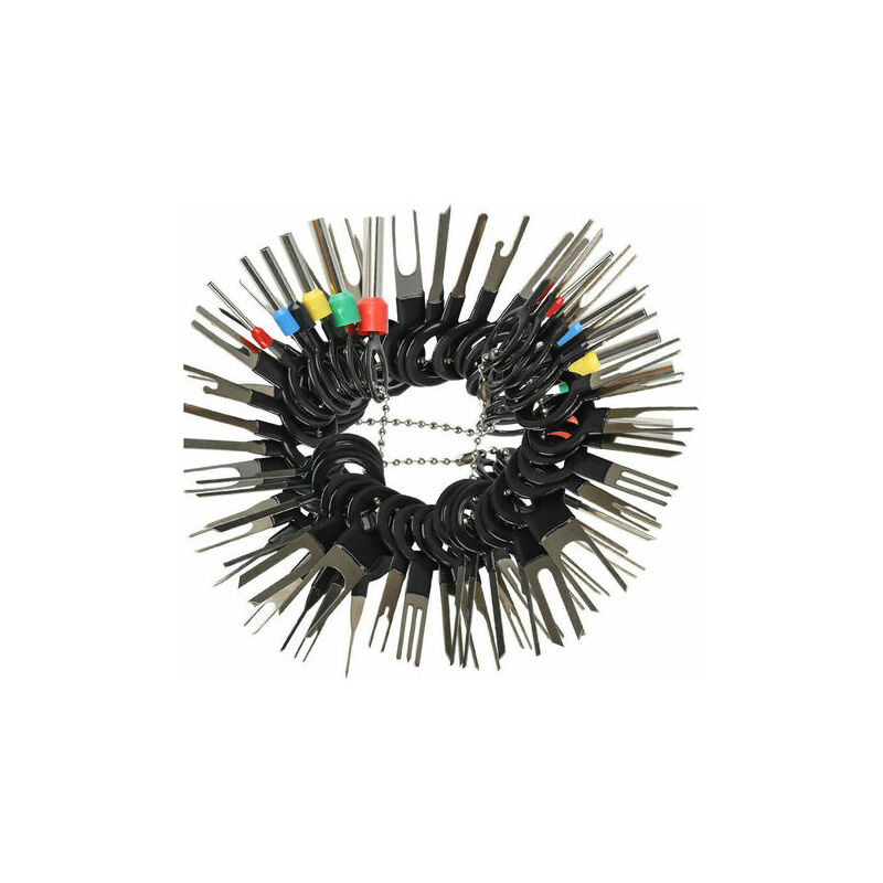 Strumento di rimozione del terminale per auto senza sforzo, fornisce una leva eccessiva in modo da poter rimuovere facilmente il cavo. Caratteristiche: Ci sono 12 pezzi di estrattori a perno singolo, 1 pezzo di estrattore a tre perni, 20 pezzi di estrattori a doppio perno e 6 pezzi di attrezzo per rivestimento, 39 pezzi in totale. Offri estrattori a perno singolo e doppio e uno strumento di fusione in diverse dimensioni per adattarsi qualsiasi terminale. Lo strumento terminale non ha bisogno di sollevare i terminali. Basta inserire il nostro strumento, spingere e tirare i perni terminali per la rimozione. Lo strumento di estrazione dei perni della piastra a molla realizzato in acciaio e plastica di alta qualità, flessibile e resistente. Può essere utilizzato per la maggior parte auto, moto e altri dispositivi elettronici come elettrodomestici. Caratteristiche: Materiale: piastra a molla in acciaio. Larghezza perno singolo: 0,8 mm, 1 mm, 1,2 mm, 1,4 mm, punta ad ago singolo.