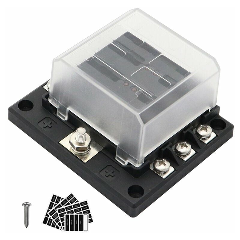 etichettatura, conveniente per l'esame e la riparazione. Caratteristiche: Tipo di montaggio: fusibile medio, fusibile di reset manuale medio (ATP / ATC / ATO) Tensione: DC 32V MAX Amp Nota per diramazione: MAX 30A (terminali a vite) Amp max cumulativo: 100A per blocco Dimensione terminale Stud: M5 (#10) (3/16 & #34;