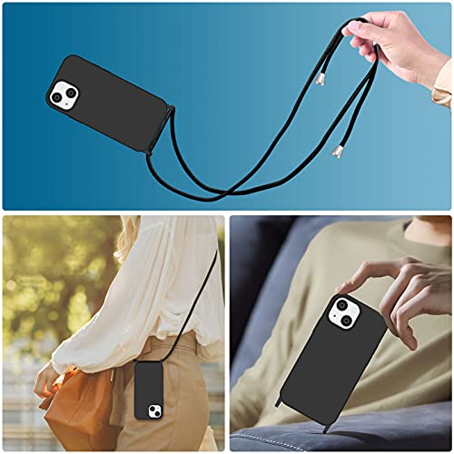 Nupcknn Cover con Cordino per iPhone 13, [Antiurto] [An tiGraffio] [Antiscivolo] Custodia Liquido Silicone con Collana Protettivo Morbido Cellulare Cover con Cordoncino Case(Nero)