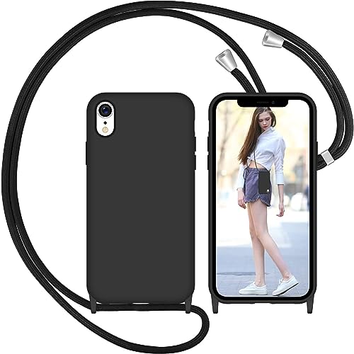 Nupcknn Cover con Cordino per iPhone XR, [Antiurto] [An tiGraffio] [Antiscivolo] Custodia Liquido Silicone con Collana Protettivo Morbido Cellulare Cover con Cordoncino Case(Nero, 6.1")