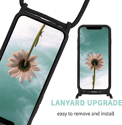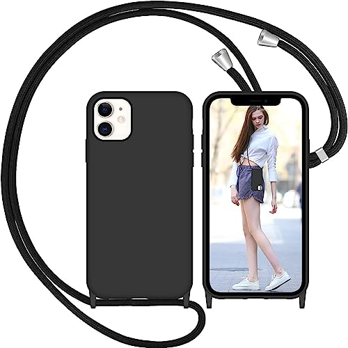 Nupcknn Custodia in silicone liquido per iPhone 12/iPhone 12 Pro, con cordino da appendere, con cinturino (nero, 6,1")