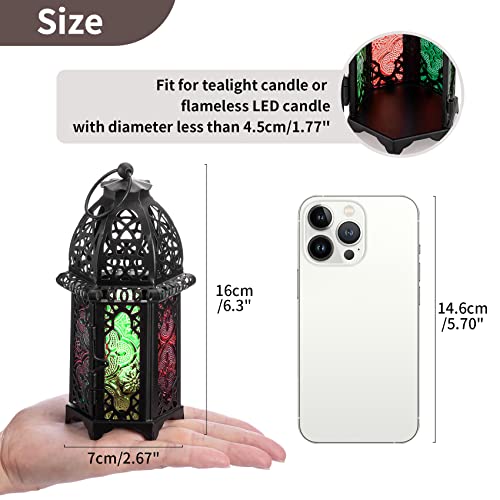 Lanterna di piccole dimensioni (7 * 7 * 16 cm) con 6 pannelli in vetro colorato con grande apertura della porta. Utilizza candele da té, candele votive.