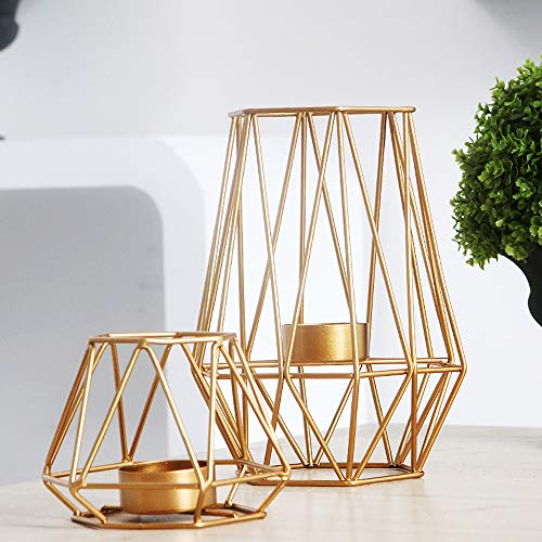 Nuptio 2 Pezzi di Candeliere in Ferro Battuto a Linea Geometrica, Decorazione Candelabro d'oro per Tavolo da Pranzo, Completo Portacandele per Matrimonio Festa(Piccolo + Grande)