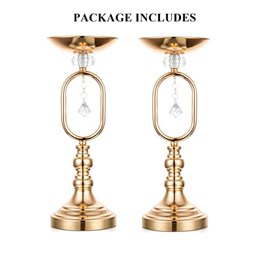 Nuptio 2 Pezzi Vaso Fiori in Metallo per Ricevimento di Nozze, Portacandele in Oro Alto 38cm, Centrotavola Decorazioni Tavola Sala Pranzo, Vasi Centrotavola Portafiori Festa Anniversario Compleanno