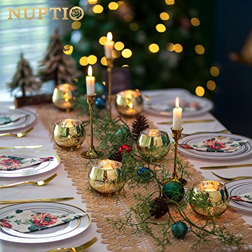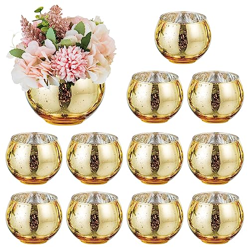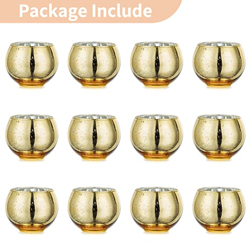 Nuptio Oro Portacandele 7.6cm di Larghezza 12 Pezzi di Vetro Portacandele Votive Alla Rinfusa, Mercurio Rotondo Piccolo Vaso Portacandele Natale Camino Sale Pranzo Matrimonio Tavolo Decorazioni Regalo