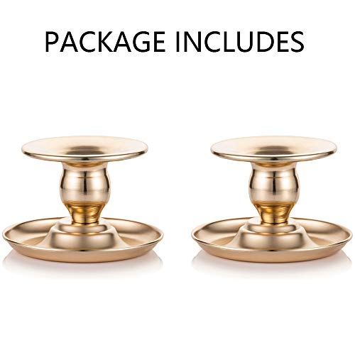 Nuptio Portacandele in Metallo in Oro 2 Pezzi Chamberstick in Ottone Dorato Adatto per Candele Coniche, Candelieri, Tealights e Pilastri- per Display per Finestre e Mantelli