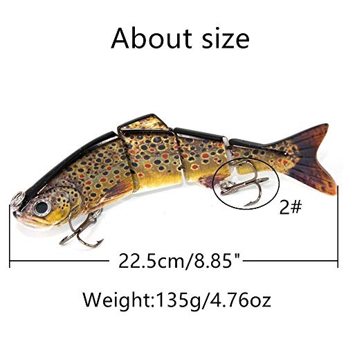 Nuptio Swimbaits per Bassi Realistici 4 Segmenti Big Giant Sinking Bass Basso Esche Artificiali Hard Bait Swimbait per Pesca, Ottimo per Fisherman Dad Gift