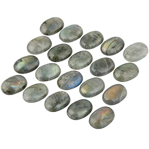 Quantità: 5. Forma semiovale. Dimensioni: 13 x 18 mm. Materiale: labradorite. Peso: 2-2,5 g. Contenuto della confezione: 5 cabochon, 1 sacchetto regalo.