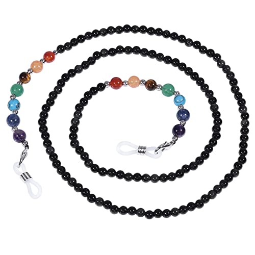 Nupuyai 7 chakra, collana per occhiali da sole da donna, con cristalli, maschera per il viso, con pietre preziose, cordino per occhiali da lettura, occhiali miopia, Ossidiana nera, Taglia unica