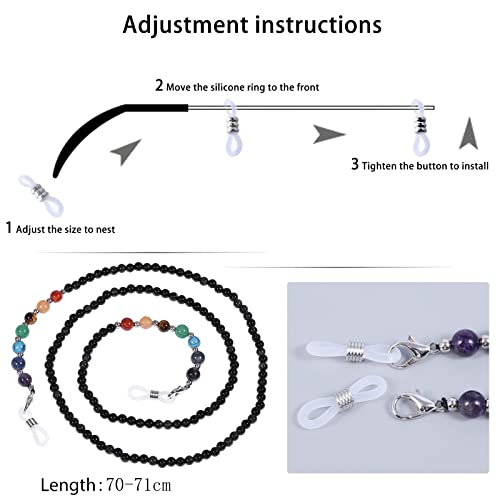 Collana per occhiali da 7 chakra: la collana per occhiali con pietra curativa è rivestita con perle di cristallo che rappresentano 7 diversi chakra. Puoi usarlo per bilanciare e guarire i tuoi chakra, promuovere il flusso di energia nel tuo corpo, sentire energia positiva e rilassare il corpo e la mente.
