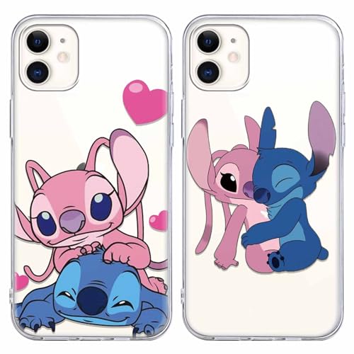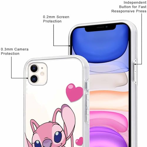 Nurkorki 2 Pezzi Cover per iPhone 11 6,1", Stitch Anime Carino Pattern Cartoon Disegni Case Trasparente TPU Morbido Silicone Bumper Antiurto Protettiva Custodia per iPhone 11