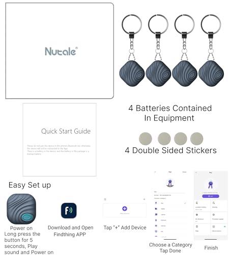 Nutale Findthing Localizzatore Trova Oggetti 4PCS Blu Smarriti e Chiavi con App per Cani, Bambini, Gatti, Bagagli, Portafogli, Batteria Sostituibile Impermeabile