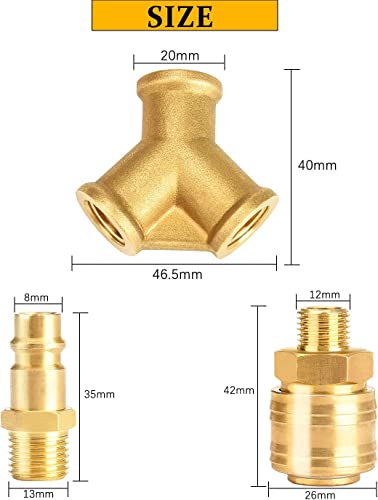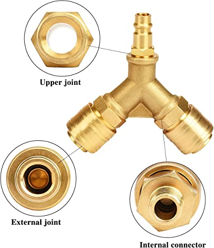 Nutmanel Distributore di aria Compressa a 2 vie, Distributore aria Compressa a Y da 1/4, connettore dell'aria compressa in ottone per Tubo dellaria Raccordi Compressori