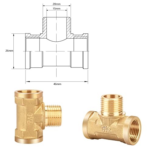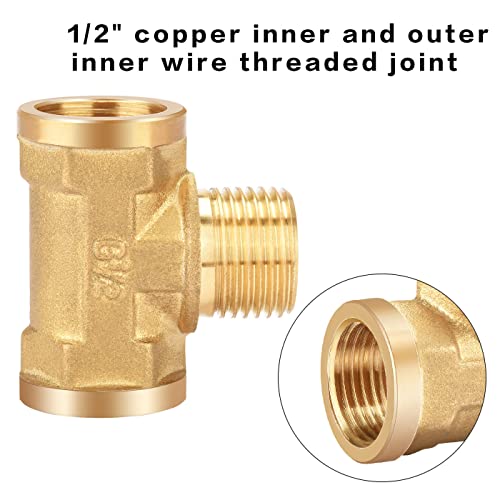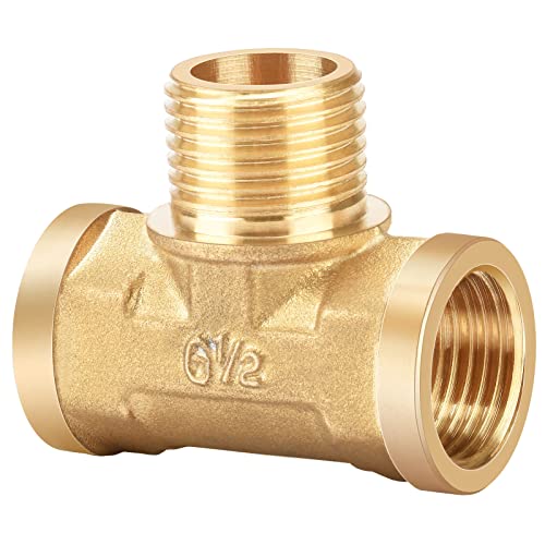 Nutmanel Raccordo a T in ottone filettatura 1/2", raccordi in ottone per raccordi di tubi FMF