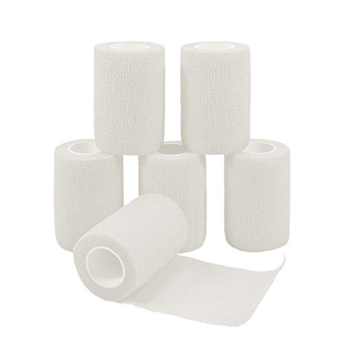 Nutoko 6 Rotoli Benda Elastica Bendaggio Adesiva Coesiva Benda Nastro Elastico Autoadesivo Salvapelle Sport Nastro Bendaggio Sportivo per Mani, Piedi, Ginocchia, Braccia 7.5cm x 4.5m (Bianco)