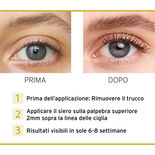 SIERO CIGLIA E SOPRACCIGLIA FACILE DA APPLICARE: Il siero per la crescita delle ciglia si applica 1-2mm sopra la linea ciliare. Se necessario, può essere utilizzato anche come siero sopracciglia per ottenere sopracciglia più spesse