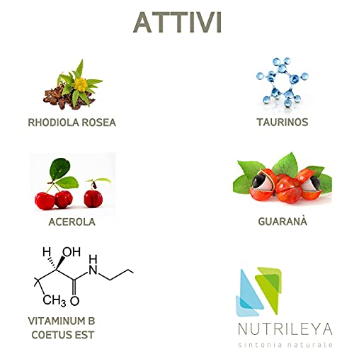 Nutrisprint, 10 Flaconcini 100ml - Aumenta Energia, Forza, Concentrazione - Per Sessioni Allenamenti, Studio o Lavoro Intensi - Contro la Stanchezza - Rhodiola, Taurina, Guaranà, Caffeina - Nutrileya