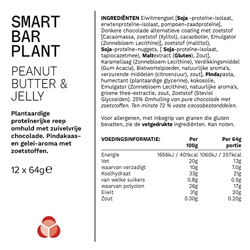 PhD Nutrition Smart Plant Bar, Barrette Proteiche Vegane con 18gr di Proteine, Pochi Zuccheri, Gusto Burro di Arachidi e Fragola (64gr x 12 Barrette)