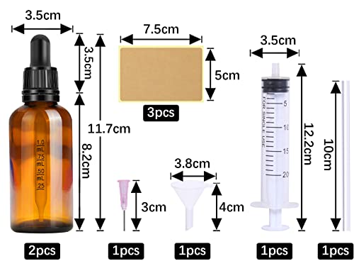 Nuts OT nuts 50ml 2 Pezzi Ambrato Bottiglie Contagocce Pipette Contagocce Boccette con Pipetta Marrone Contagocce Vetro con Imbuti, Tappo Nero per Laboratorio,Aromaterapia,Olio Essenzial
