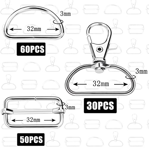 Nuts OT nuts Moschettoni per Borse 140pcs Fibbia per Borse Fibbie Metallo 32mm Moschettone Borsa Ganci per Borse fai da te Fibbie per Cintura, per DIY Craft,Tracolla, Riparazione Zaino Argento