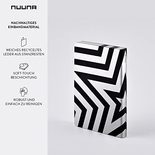 Nuuna 52804 taccuino immagini S - "Super Star - Smooth Bonded Leather, Soft Cover, Mini Punto Raster, farbschnitt, 176 pagine di carta premium, DIN A6, nero/argento