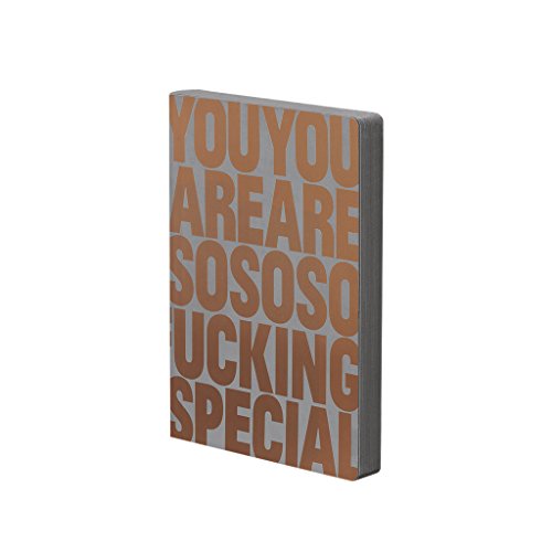 Nuuna Graphic - Taccuino in pelle, rilegatura liscia, motivo:"You are so F***ing Special", L, colore: rame/grigio