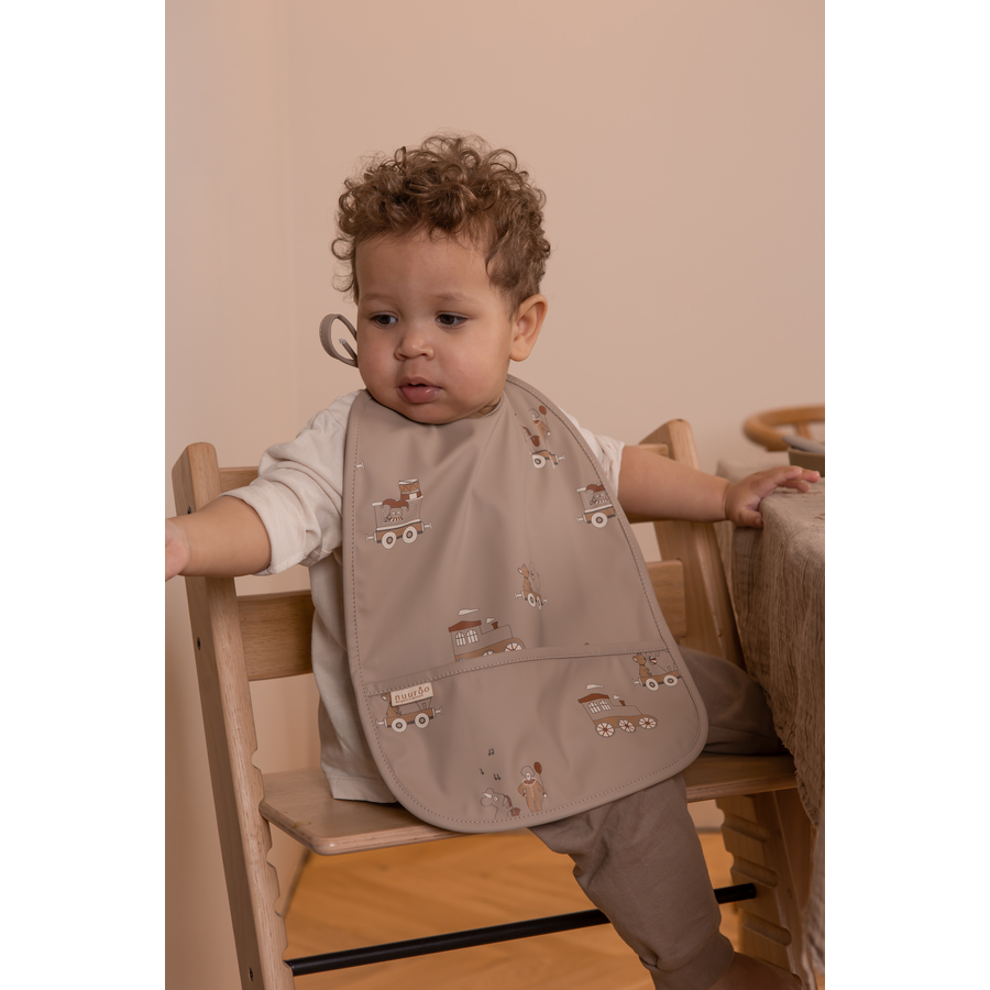 Dettagli del prodotto: Bavaglino impermeabile per bambini Leggero e comodo da indossare Ampia tasca frontale per proteggere ancora meglio i vestiti Allover Grafica print Dimensioni: 28 x 37 cm Materiale e cura: Materiale: 68% poliestere riciclato, 32% poliuretano. Pulire con un panno umido La consegna include: 1 x bavaglino