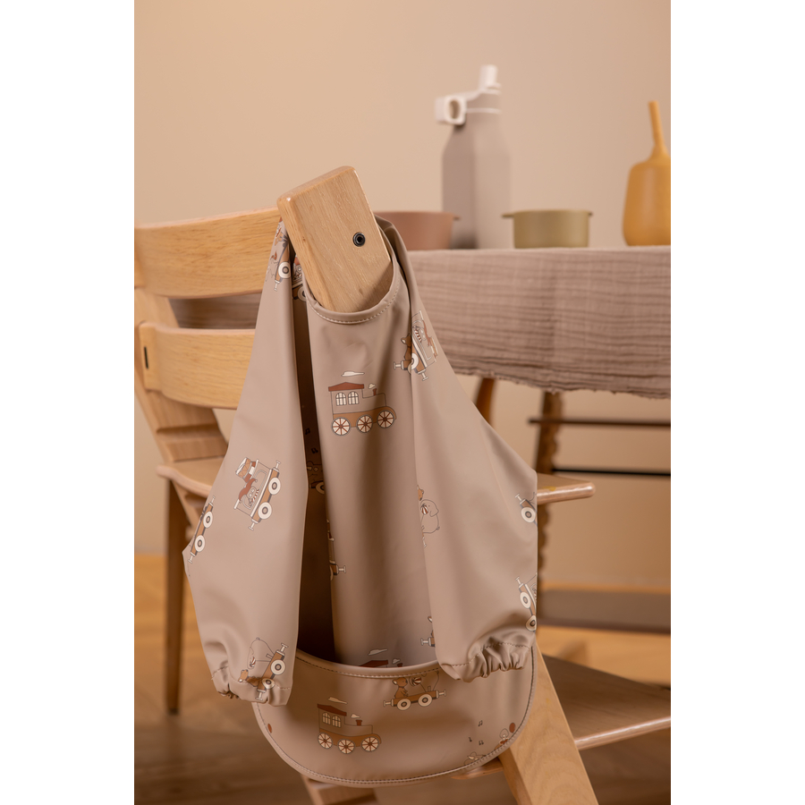 Dettagli del prodotto: Bavaglino rivestito con maniche lunghe. Perfetto per i bambini che imparano a mangiare Il bavaglino mantiene il bambino pulito e asciutto durante la pappa Un must per le famiglie con neonati e bambini piccoli Allover Grafica print Dimensioni: 78 cm x 42 cm Materiale e cura: Materiale: 68% poliestere riciclato, 32% poliuretano Pulire con un panno umido La consegna include: 1 x bavaglino
