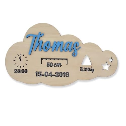 DPE - NUVOLA NASCITA personalizzata in legno. Personalizza con Nome, Data, Ora, Peso e Altezza. Regali per Bambini, Neonato, Battesimo, Nascita. Idea Regalo Originale Personalizzata.