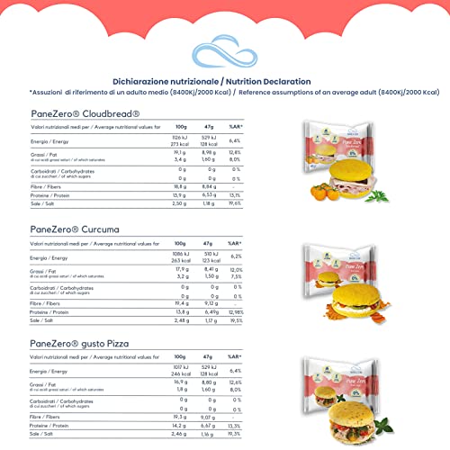 [CONTENUTO CONFEZIONE]: 3pz Pane Zero gusto Pizza, 3pz Pane Zero gusto Curcuma, 3pz Pane Zero gusto Cloudbread, 3pz Dolce Zero gusto Vaniglia, 3pz Dolce Zero gusto Cacao, 3pz Dolce Zero gusto Nocciola.