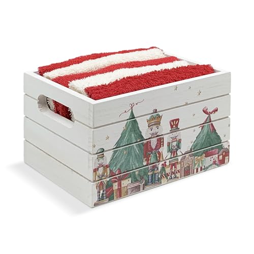 Cestino in legno natalizio con 5 lavette firmato Nuvole di Stoffa della collezione Christmas Carol. Aggiungi un tocco di Natale alla tua casa.