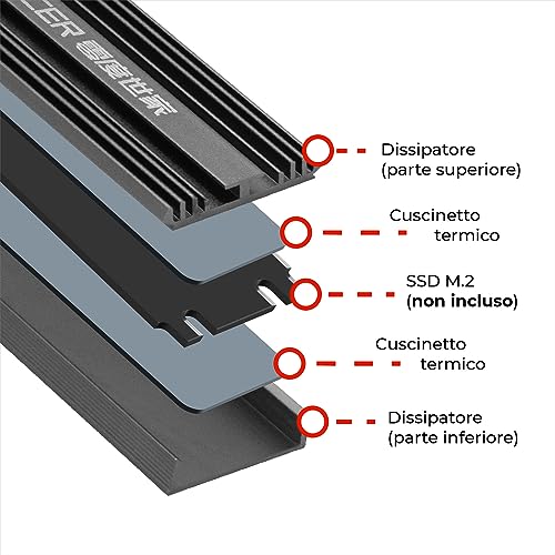 Nuwo SSD M.2 2280 Dissipatore di Calore in Alluminio con 4 Cuscinetti Termici in Silicone, Raffreddamento SSD ad Alte Prestazioni per PC Computer Gaming PS5