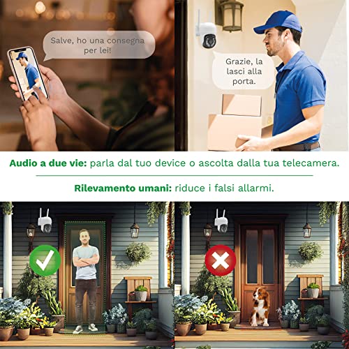 【Angolo di visione e immagini eccellenti】La telecamera wifi esterna da 4MP e visione notturna può farti sperimentare dettagli ravvicinati impeccabili, offrendoti video nitidi e piacevoli sia di giorno che di notte. Proteggi la tua casa/ufficio/lavoro 7 * 24. Ne vorrai uno per l'ingresso del tuo cortile, garage, cortile e il tuo bellissimo giardino