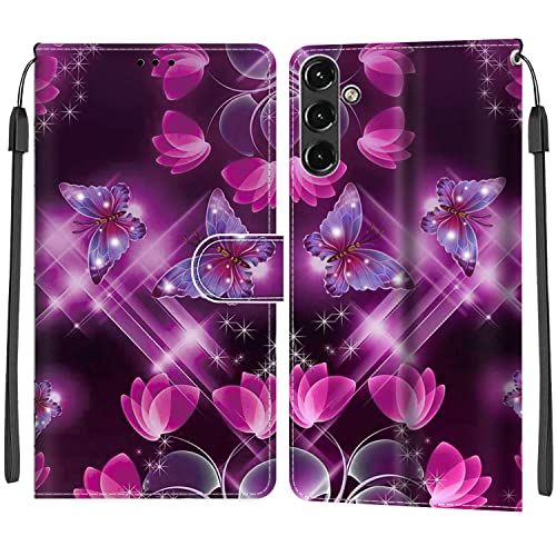 Nuxiady Custodia per Samsung Galaxy A14 5G Pelle PU Custodia con Creativo Motivo Disegni, Protettiva Case Cover a Libro Antiurto Portafoglio Caso per Samsung A14 5G con Cute Modello, Farfalla Viola