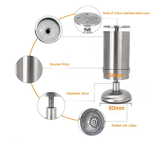 Set di 4 mobili regolabili NUZAMAS 35 cm x 5 cm Le gambe sono in acciaio inossidabile, composte da una solida copertura in acciaio inossidabile (3,5 mm), base e bullone ispessiti. La massima qualità e manifattura consentono a ciascuna gamba di sostenere fino a 100 kg di peso.