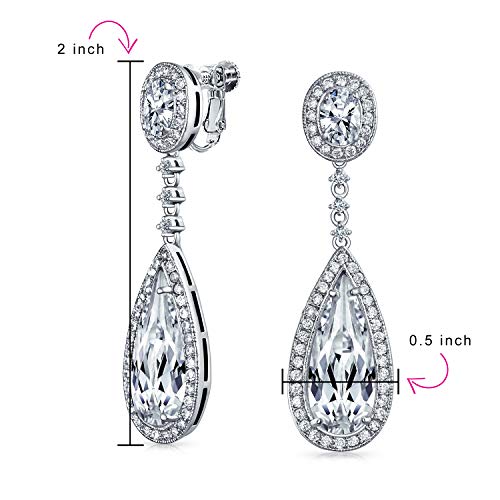 Il giorno del tuo matrimonio, sfoggia questi seducenti orecchini a clip da sposa in ottone per orecchie non forate. Evidenziati da un cz a forma di pera lungo 2in con cz ovale in cima e scintillanti accenti di cz pave. Una scelta elegante per la vostra amica nata in aprile.