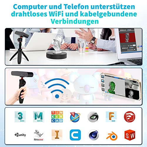 Nvlifa Scanner 3D Pop, Portatile3D-Scanner con giradischi e supporto per cellulare, scansione facciale a infrarossi, scanner di connessione Wi-Fi compatibile con Mac, Windows 8/10, iOS, Android