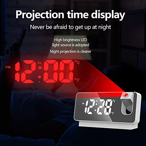 ♘Proiezione della temperatura: si prevede che la temperatura cambi automaticamente dalla temperatura interna alla temperatura esterna. L'orologio a proiezione viene proiettato sulla parete in rosso tenue, si consiglia che la distanza di proiezione sul soffitto o sulla parete sia compresa tra 5 e 13 piedi (da 1,5 a 4 ).